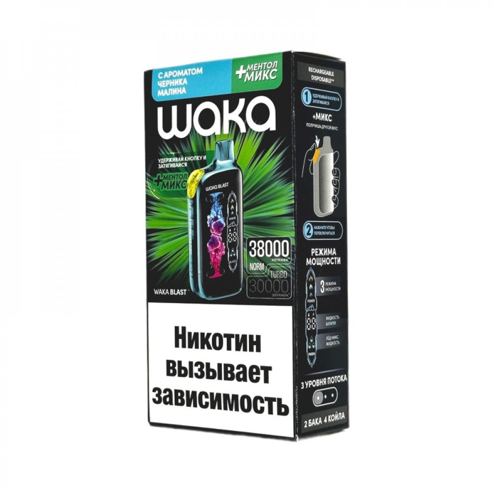 WAKA BLAST 38000 Hard - Черника малина + ментол микс - купить в Салавате